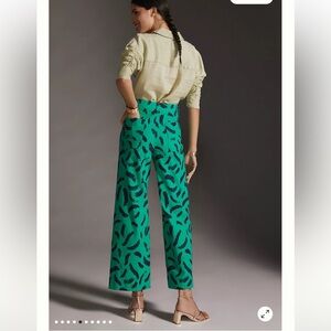 These Maeve Colette Cropped Wide-Leg Trousers from Anthropologie are in excellent pre-owned condition with minimal signs of wear. Fabric remains vibrant with good structure and stretch. No visible stains, holes, or significant flaws observed. Zipper and button closure function properly.