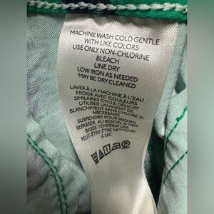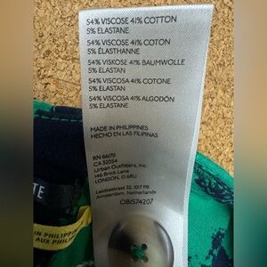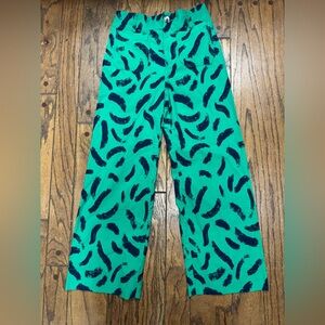 The bold green abstract print adds a fun statement style that pairs easily with simple tops, blouses, or sweaters. These versatile trousers work well for casual outfits, office wear, or dressed-up occasions.