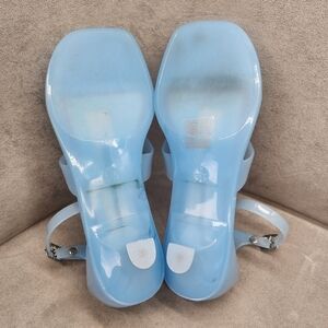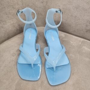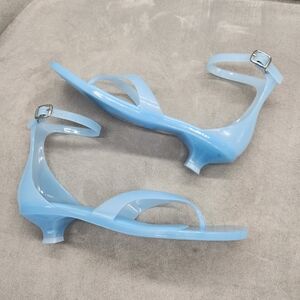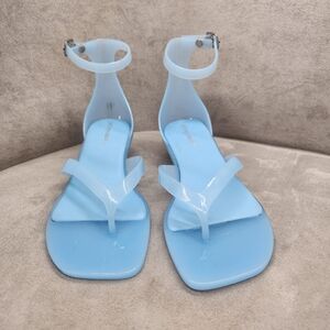Jeffrey Campbell Thong Sandals 8 Blue Jelly Gumdrop Kitten Heel Ankle New $65
