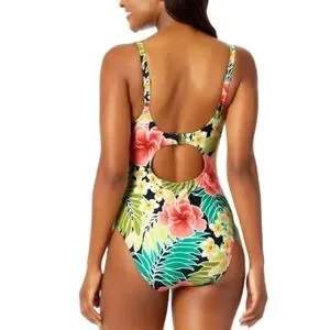 NEW HURLEY One-Piece Swimsuit in Pink Poppy Tropics Floral - Size Small