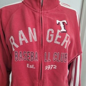 Banner 47 Texas Rangers Red Baseball Full Zip Sweater Size Large