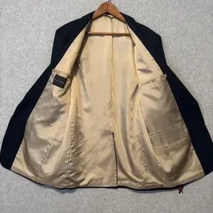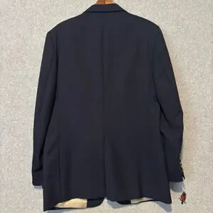 New Castle & York Men's 42L Blazer Navy Blue Gold Crest Buttons USA Vintage 90s