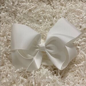 * a hair bow accessory available in white or pink. Choose your color when you add to the card.