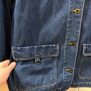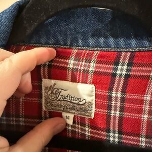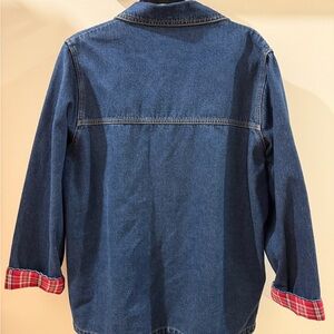 Vintage Women's Blue Denim Jacket with Red Plaid Lining
