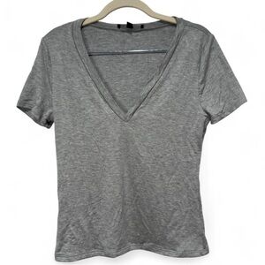 Lulus Carefree Look Heather Grey Short Sleeve V-Neck Tee Size Medium