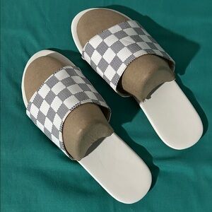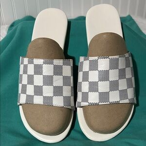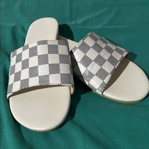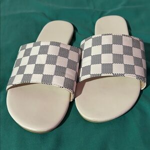 Checkerboard Slide Sandals in White w/ black sz:39