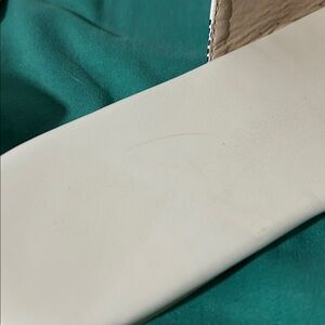 Sole does show some wear and there is a light scratch on the inside of left sandal — please see photos! :)