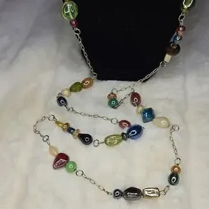 Silver tone Glass and Acrylic beads Total length 46 Inches, Not adjustable Inventory box 3