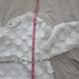 Anthropologie Dottie White Polka-dot Mid Sleeve Top Size 4