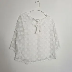 Chic and stylish white polka dot top for women. Perfect for any occasion.