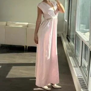 Vintage Baby Pink Lace Trim Maxi Dress - Fairycore Ballet Style