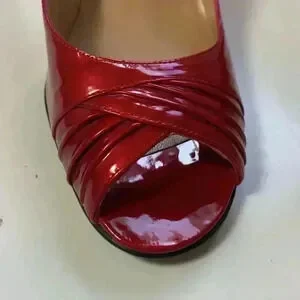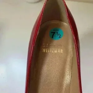 Stuart Weitzman, candy apple red heels with peep toe, 7 1/2 narrow