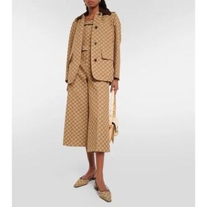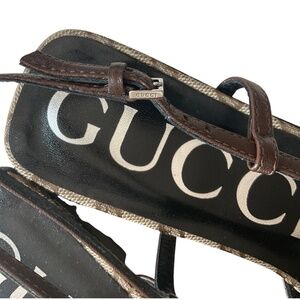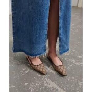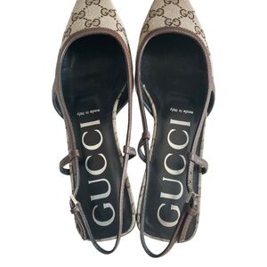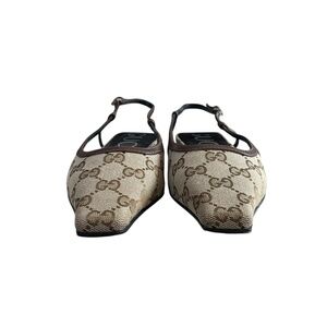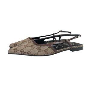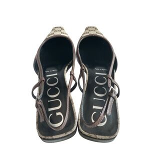 Elegant Gucci flats with signature pattern. Beige and brown design. Comfortable and stylish.