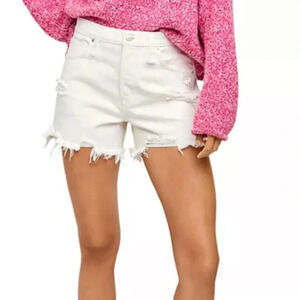 Free People Makai Cutoff Short White Denim Distressed Size 24 NWT
