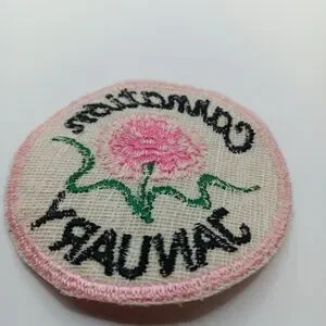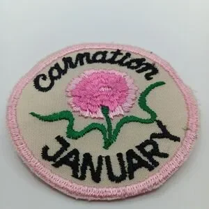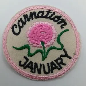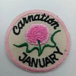 1970s Vintage January Birthday Pink Carnation Flower 70s Sew On Applique Patch
