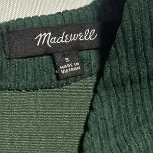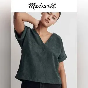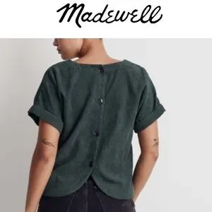 Madewell Corduroy V-Neck Top Shirt Button Down Back - Dark Green
