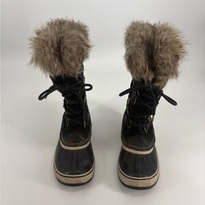 Stay warm and stylish with these black fur-lined winter boots. Perfect for cold weather, these boots offer comfort and durability.