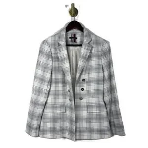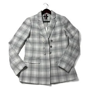 Tommy Hilfiger Blazer Size 4 Women black & white Plaid Lined Double Breasted