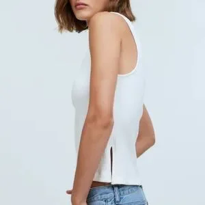 Madewell Side-Slit Mockneck Tank Sleeveless Ribbed Tank Top - Color: Lighthouse
