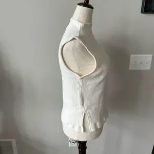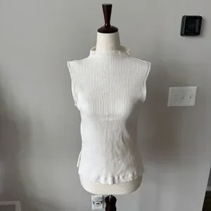 Elevate your style with this chic white sleeveless ribbed turtleneck top. Perfect for layering or wearing alone, it offers a sleek and modern look.