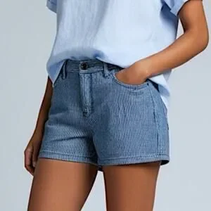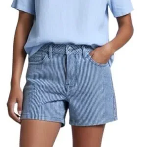 Calvin Klein Jeans Denim Shorts Sz 2 Blue White Pinstripe Mid-Rise Cotton Blend