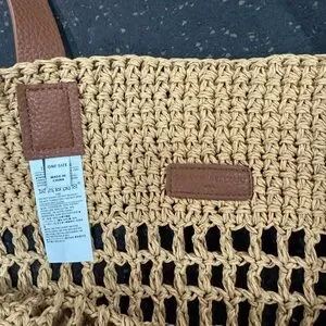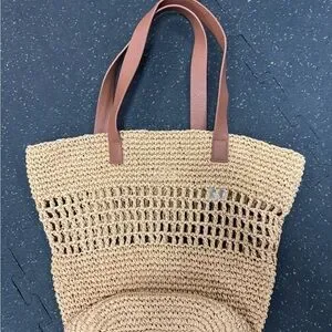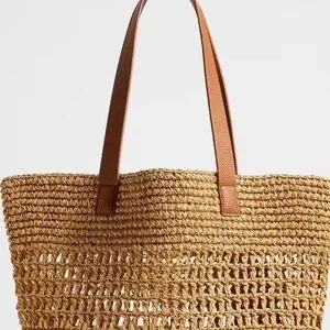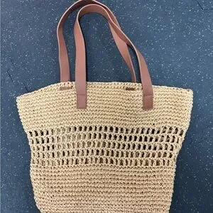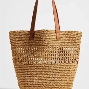 Beautiful Banana Republic Iarge raffia tote with a cotton inner base for structure and stability and nice thick synthetic leather shoulder straps for comfort and style. Can be worn everyday, vacation, market shopping, or any occasion.