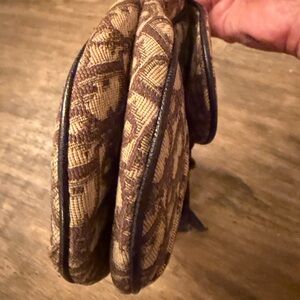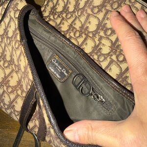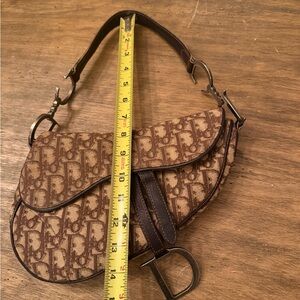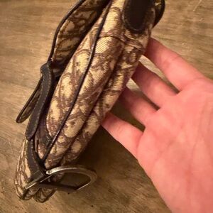 Vintage Christian Dior Oblique Saddle Bag in brown canvas with leather trim
