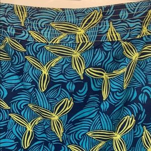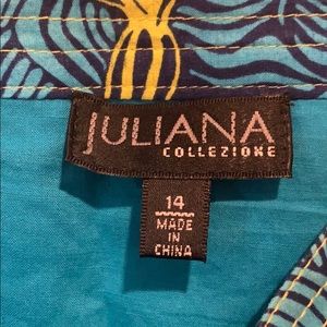 Juliana Collezione Skirt. A deep blue background with teal and yellow flower swirls. Hidden side zipper. There is also a lining underneath.