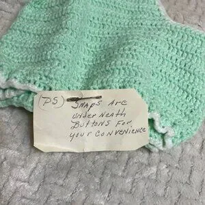 gender neutral, coming home outfit, vintage, retro, handmade, OOAK, mint green, knit