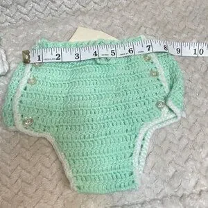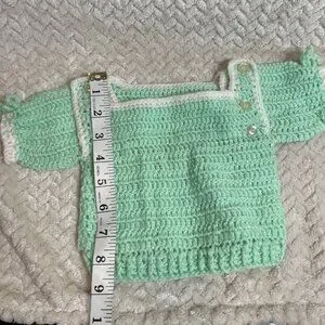 Vintage Handmade Light Green Knitted 2 piece Infant Outfit OS OOAK
