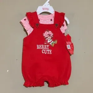 Strawberry Shortcake Baby Girl 2 Piece Set Overalls Red Pink NWT 3M 3 Month. Super cute!! New with tags. All items from smoke free, pet friendly home. Open to offers and bundle for a discount! Items cross posted.