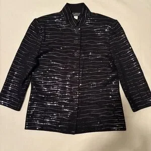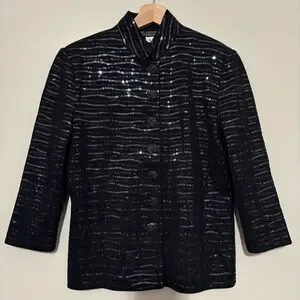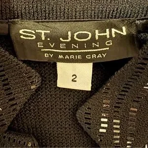 St. John Evening Black Textured Open-Front Blazer Embellished Buttons Size 2