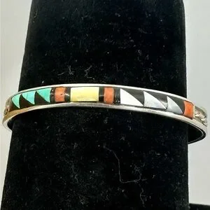 ZUNI JOHN & ROSALIE BOWANNIE JRB Navajo Sterling Silver Turquoise Cuff Bracelet
