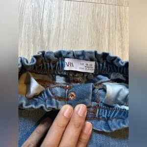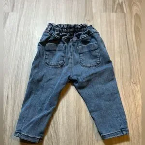 Adorable ZARA baby jeans in size 9–12 months. These feature a comfy elastic waistband and soft denim fabric — perfect for everyday wear.