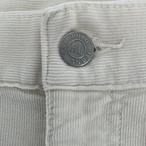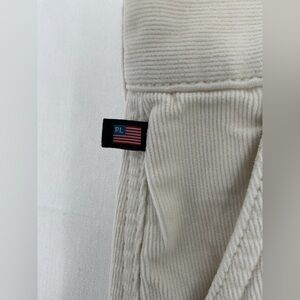 Classic Polo Jeans Co Ralph Lauren corduroy cargo skirt in a soft ivory tone. Constructed from fine wale stretch corduroy with a structured waistband, belt loops, and front zip fly with signature Polo Jeans Co metal button closure.