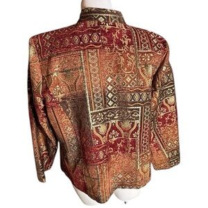 Molly & Maxx 2X Jacket Tapestry Zip Front Multicolor Fall Blazer Embroidered. This elegant women's jacket features a stunning multicolor design with intricate patterns. Perfect for adding a touch of sophistication to any outfit. Excellent condition.