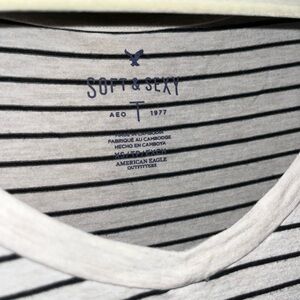 American Eagle Outfitters White and Black Striped V-Neck Long Sleeve Top