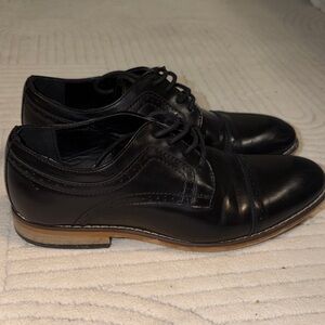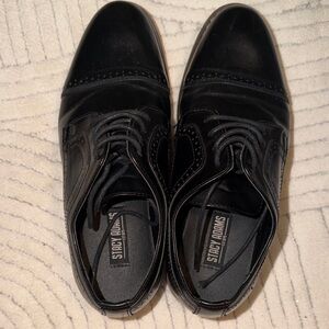 Sleek black Derbys by Stacy Adams. Ideal for formal events. Timeless design with a polished finish. Kids size . Not men