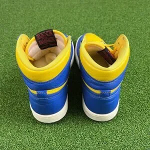 Step out in vibrant style with these fantastic Nike Air Jordan 1 Retro High OG 'Reverse Laney' sneakers! This iconic high-top silhouette brings a fresh twist to a classic, featuring a striking Varsity Maize yellow paired with royal blue accents that really pop.