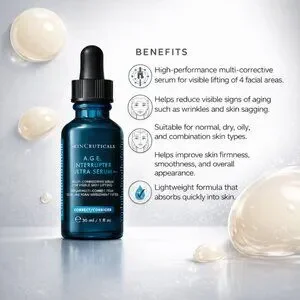 Experience advanced skincare with SkinCeuticals A.G.E. Interrupter Ultra Serum 30ml, a powerful anti-aging formula designed to help improve the visible signs of aging and restore a smoother, firmer look to the skin. This lightweight yet highly effective serum is crafted to target multiple concerns including wrinkles, loss of firmness, and uneven skin texture. With a fast-absorbing texture, it works deep within the skin to support a more lifted and youthful appearance.