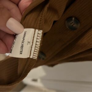 Comfortable women's corduroy shacket in brown. Soft, textured fabric with button-front closure and chest pockets. Versatile layer for casual and polished looks. Easy to style over tees or knitwear.
