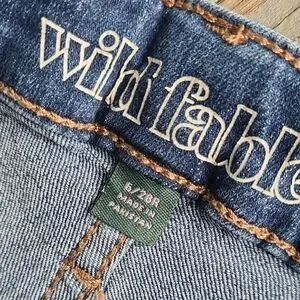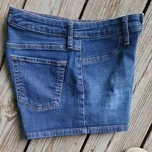 These Wild Fable jean shorts feature a stylish distressed cut-off design in a versatile blue hue. Perfect for casual outings, they offer a trendy look with frayed edges and a comfortable fit.