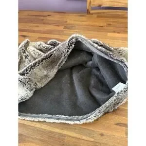Shell features a luxuriously soft light gray and taupe mix faux fur texture for a cozy, plush look and feel.