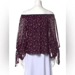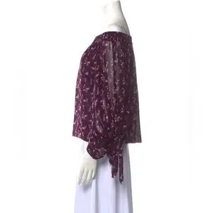 MISA Los Angeles Size M Adeli Top Off Shoulder Viscose Purple Floral Sheer Boho