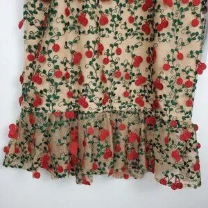 Dress the Population Kaya dress Cherry Embroidered Mini Dress Rouge Flutter Hem
