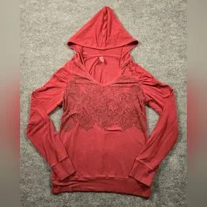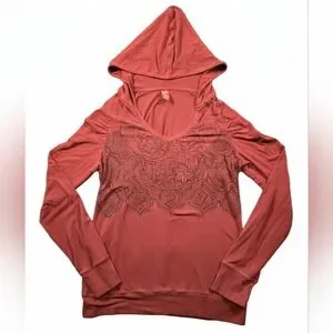 prAna Terracotta Graphic V-Neck Hoodie Pullover Size Small