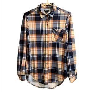 Tattoo Cottagecore Plaid Button Down Shirt Flannel Long Sleeve Orange Blue Small