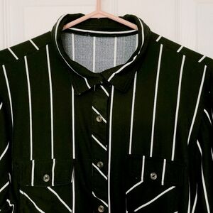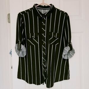 #UrbanPlanet #top #shirt #blouse #button-down #black #white #casual #casualcore #striped #stripes #oversized #baggy #baggy-fit #loose #loose-fit #loose-fitting #slouchy #slouch #preppy #stretch #stretchy #lightweight