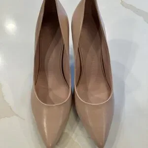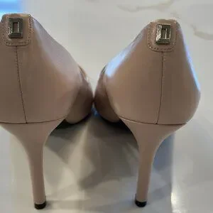 The product is a pair of elegant Karl Lagerfeld Paris Royale Leather Pumps in size 11. These beige pumps feature a pointed toe shape and a leather lining, making them perfect for parties and cocktail occasions. The outsole and upper material are both leather, providing a luxurious feel and durability. With a stylish pump design and a comfortable M shoe width, these shoes are a chic addition to any woman's wardrobe, suitable for summer and spring seasons.