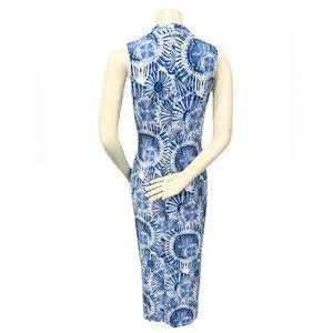 Tommy Bahama Blue White Floral Sleeveless Midi Dress Small